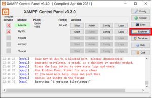 Once the installation is complete, open the XAMPP control panel and click the “Start” button to start the Apache and MySQL services. These two services are indispensable to run WordPress. If you encounter firewall or port hogging problems, you will need to resolve them in order to start the services properly.
