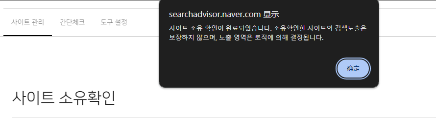 네이버가 메타 태그를 감지하면 소유권이 확인되고, 사이트가 등록됩니다.