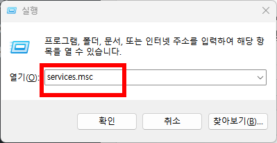 [Windows + R] 키를 누르고 services.msc를 입력한 후 확인을 클릭하여 서비스 관리자 창을 엽니다.