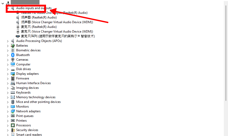사운드, 비디오 및 게임 컨트롤러를 확장하여 오디오 장치를 확인합니다.