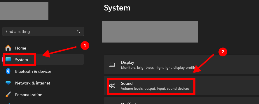 [Windows + I] 키를 눌러 설정을 열고, 시스템 -> 소리로 이동합니다.