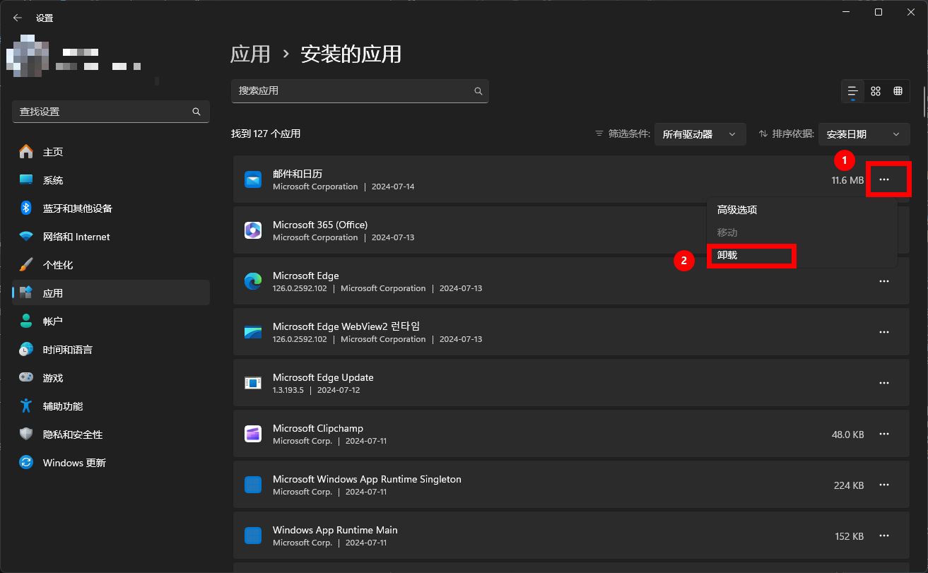 불필요한 앱 제거: “설치된 앱“에서 사용하지 않는 앱 삭제