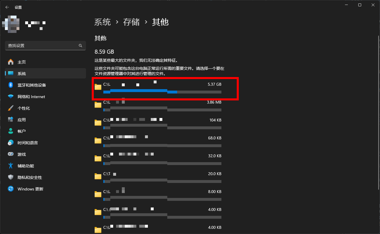 기타 파일 정리: “기타” 항목에서 큰 파일 삭제