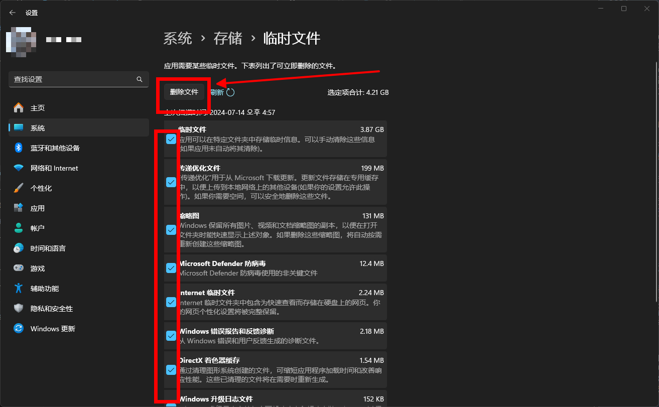 보통 ‘임시 파일 디렉터리‘에서 직접 삭제하는게 좋을 것 같습니다。