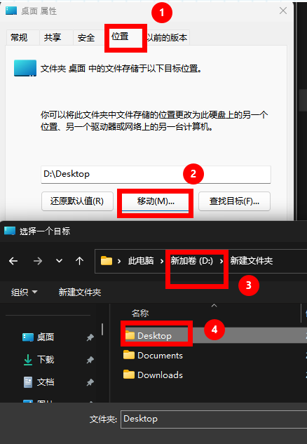 其他的文件夹也以此类推,最后完成后发现C盘中的桌面,下载,文档等默认文件夹从C盘移动到了D盘中。这样会释放很多C盘的空间。다른 폴더도 마찬가지고요. D 드라이브로 이동하면 C 드라이브의 공간이 많이 확보될 것 같아요.