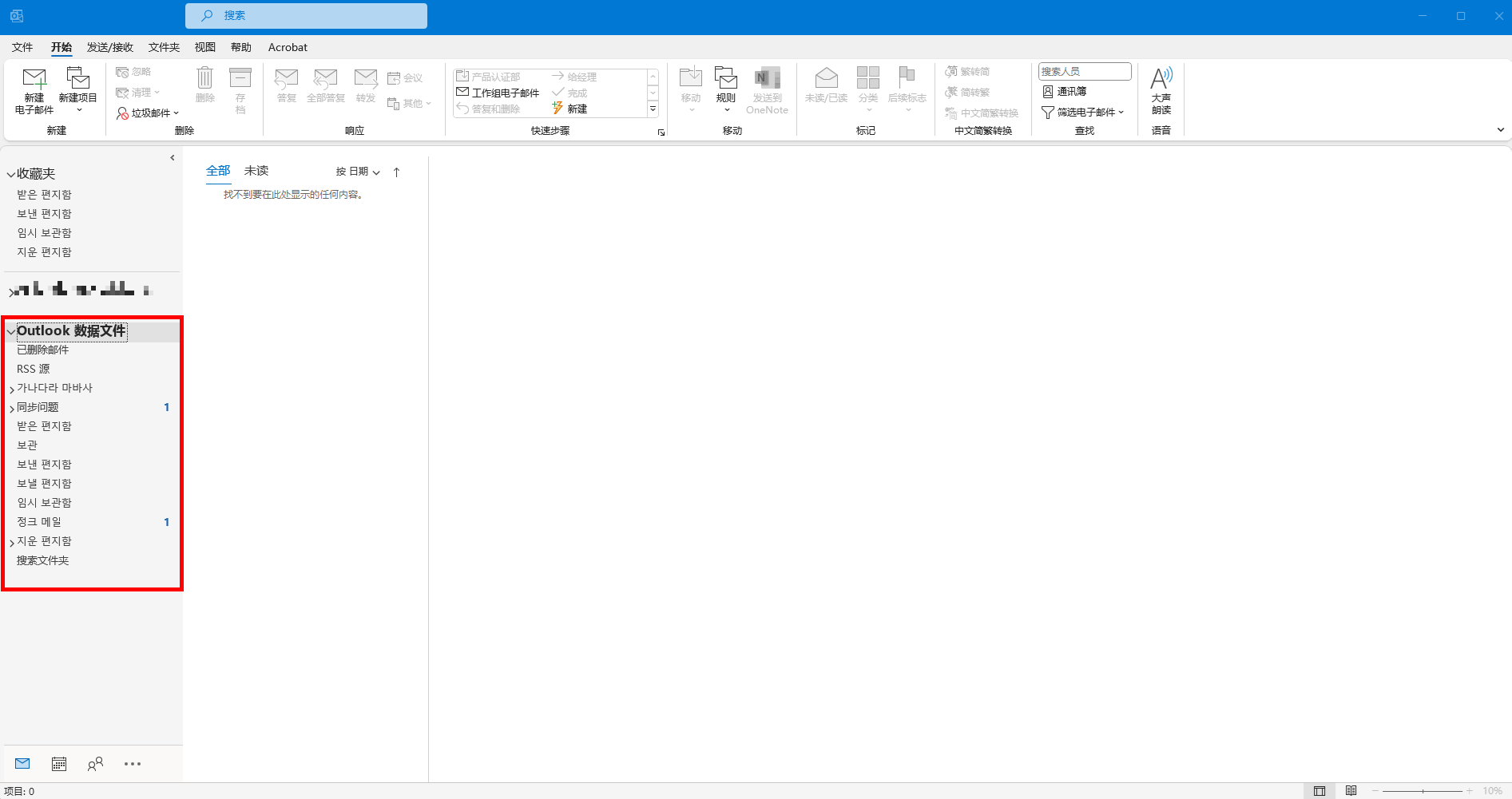 5. 在左侧的菜单栏中可以查看到”Outlook数据文件“,点开后发现文件都在。