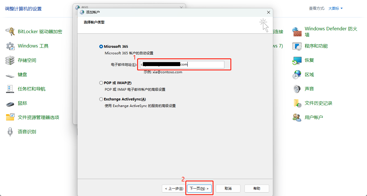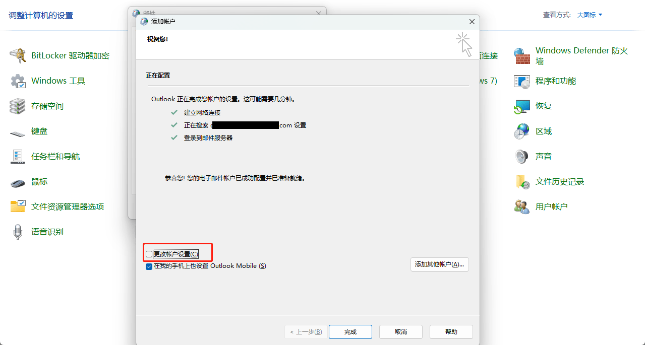- 点击“更改账户设置” >>点击“下一步”