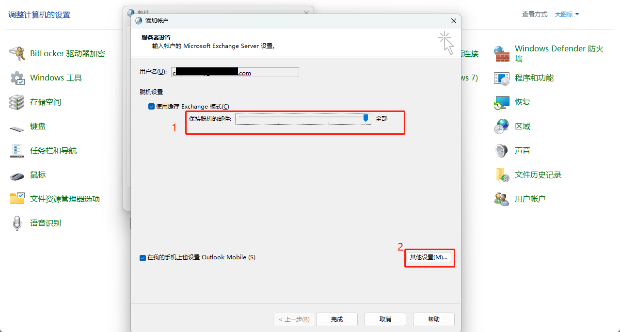 - 将保持脱机的邮件拉到“全部” >>点击“其他设置”