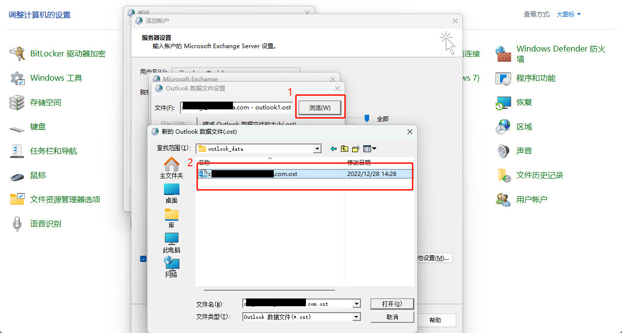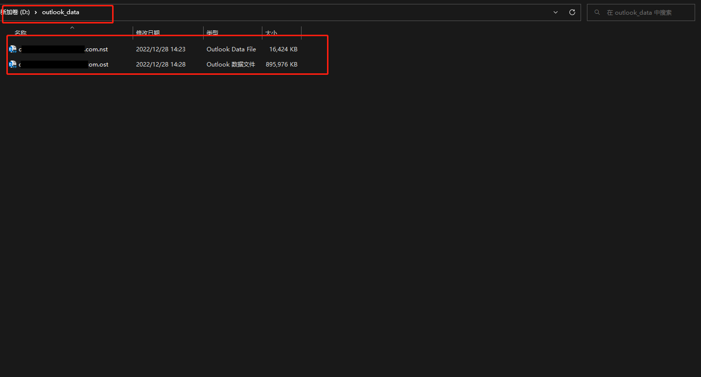 - 将.nst .和ost文件复制到D盘中 需要关掉控制面板和账户设置否则无法粘贴