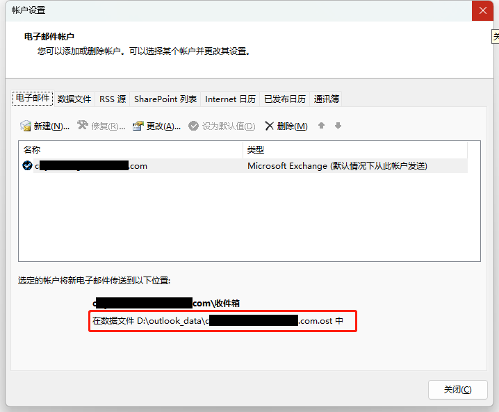 默认情况下,outlook数据文件保存在C盘(如下图),如果使用时间较长的话,会造成C盘文件过满,影响系统运行速度,本文将介绍如何将C盘中的.OST数据文件移动到D盘中。