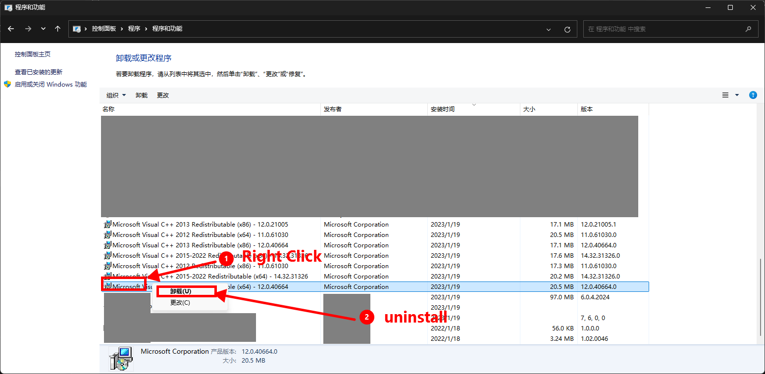 1.卸载现有的 Visual C++ Redistributable