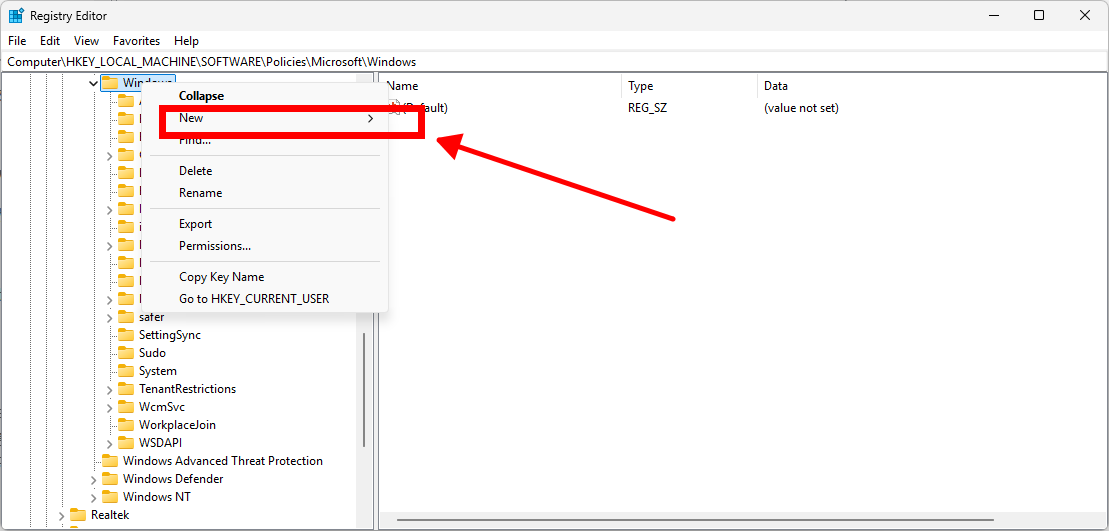* 如果没有WindowsUpdate或AU文件夹,可以右键点击Windows文件夹,选择新建 -> 项,创建所需文件夹。