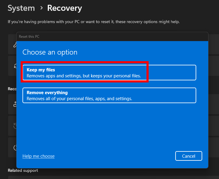 - 选择 保留我的文件 或 删除所有内容,然后按照提示完成重置操作。