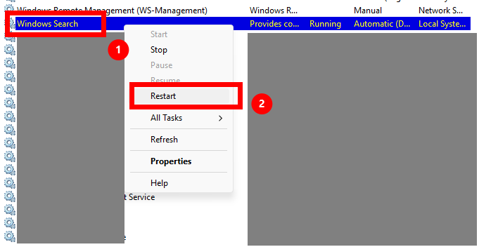 搜索功能依赖 Windows 搜索服务,重启该服务可能快速解决问题。