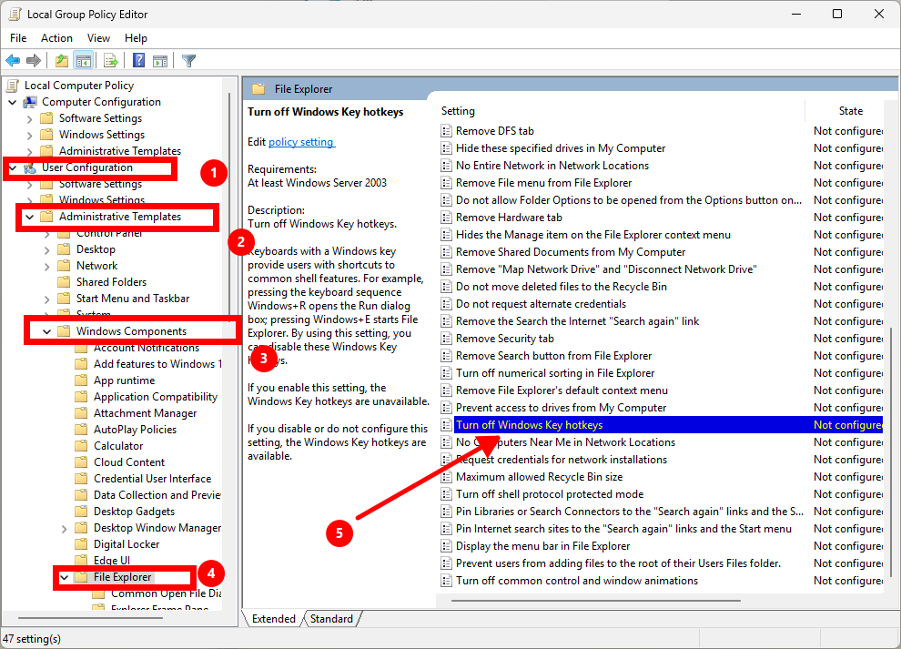 用户配置 > 管理模板 > Windows组件 > 文件资源管理器