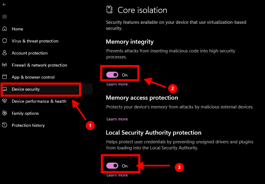 - 安装驱动后,重启电脑并再次检查内存完整性功能。
