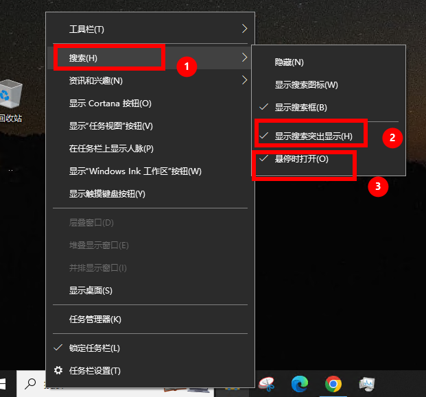右键点击下方的搜索栏 >> 取消勾选显示搜索突出显示和悬停时打开