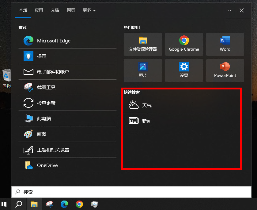 关闭完成后会发现搜索栏中特别的清爽