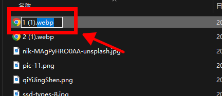 在文件资源管理器中,导航到需要修改扩展名的文件所在的文件夹。点击选择要修改的文件。选择好文件后,按键盘“F2”键,选择修改.后面的扩展名即可。比如:将webp改为png。改完后点击确定即可。