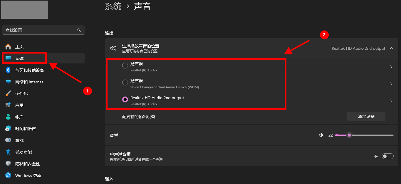 另外确保你选择了正确的输出和输入设备,并且设备音量未被静音。